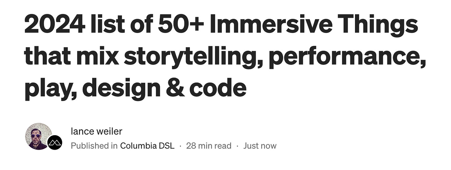2024 list of 50+ Immersive Things that mix storytelling, performance, play, design & code